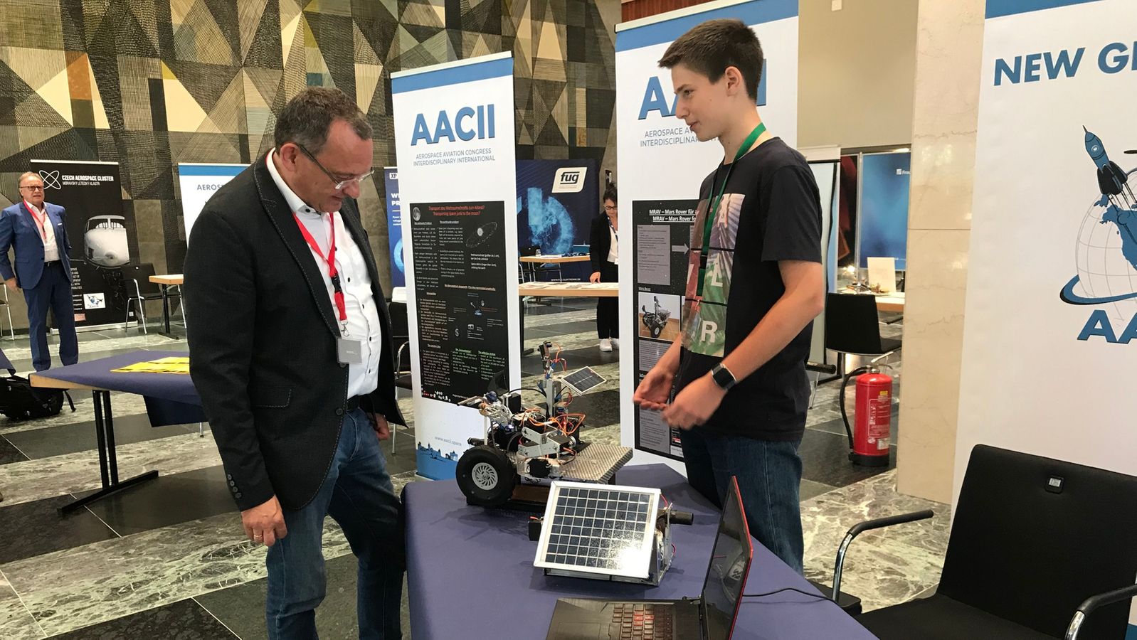 Für den Rover und seine Idee erhält der 15-Jährige viel Lob von ESA-Professor Reinhold Bertrand. "Mich freut es, wenn sich jemand völlig selbständig in ein Problem reindenkt, die vielen Detailprobleme, die es gibt, löst und mit Ideen und technischen Konzepten kommt", so der ESA-Professor. Dies gilt auch für die Idee der 15-jährigen Patricia Oerther. Sie hat sich mit dem Problem des Weltraumschrotts befasst.